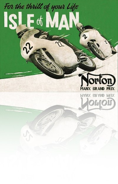 In the heyday of classic motorcycle racing, in the period from the teens through to the 60s illustration was essential to the promotion of the Manx TT both in advertising and posters for the event and for advertising the individual marques. Styles varied from dynamic ‘boys-own’ paintings to mixed-media collages of photos, airbrushing and comic-book art illustrative techniques.