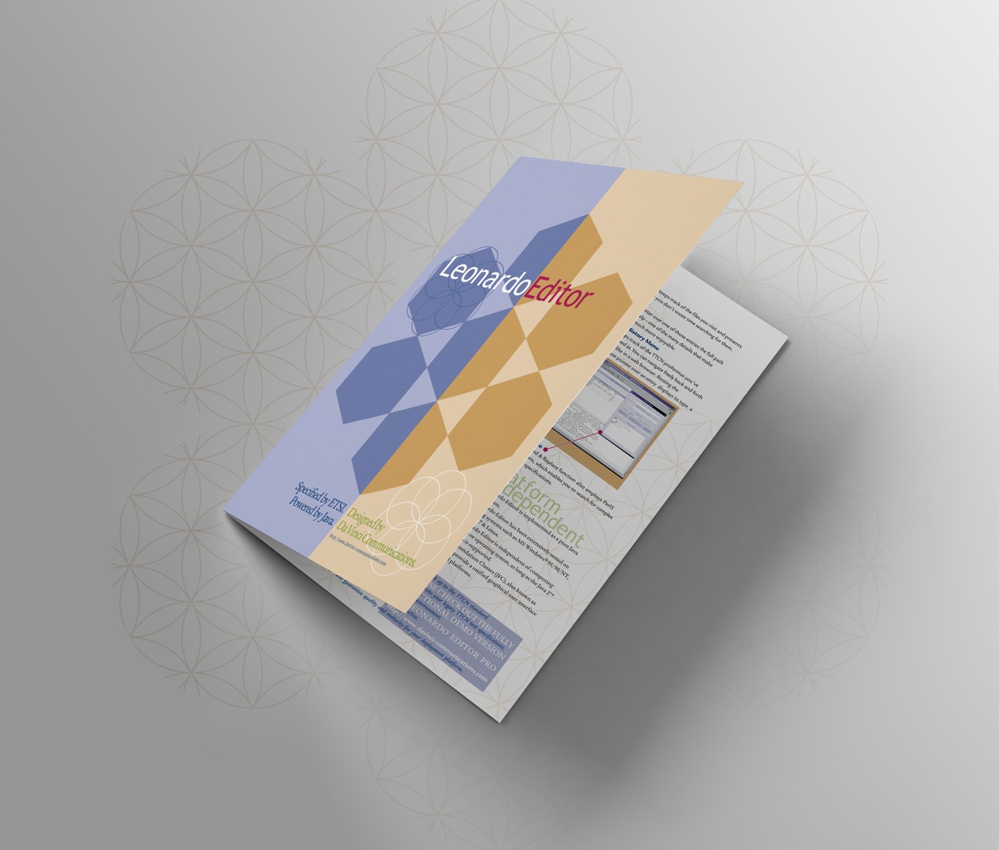 I redesigned their brand new suite of product capabilities brochures soon after Start-up with a theme that appeals to their niche market by finding common ground between the works of DaVinci and the sorts of symbolic language and forms that represent ideas of relevant non-physical things such as a cellular network. The client designed Da Vinci logo received a re-layout and typography facelift to resolve the idea in keeping with the look of the new set of brochures.