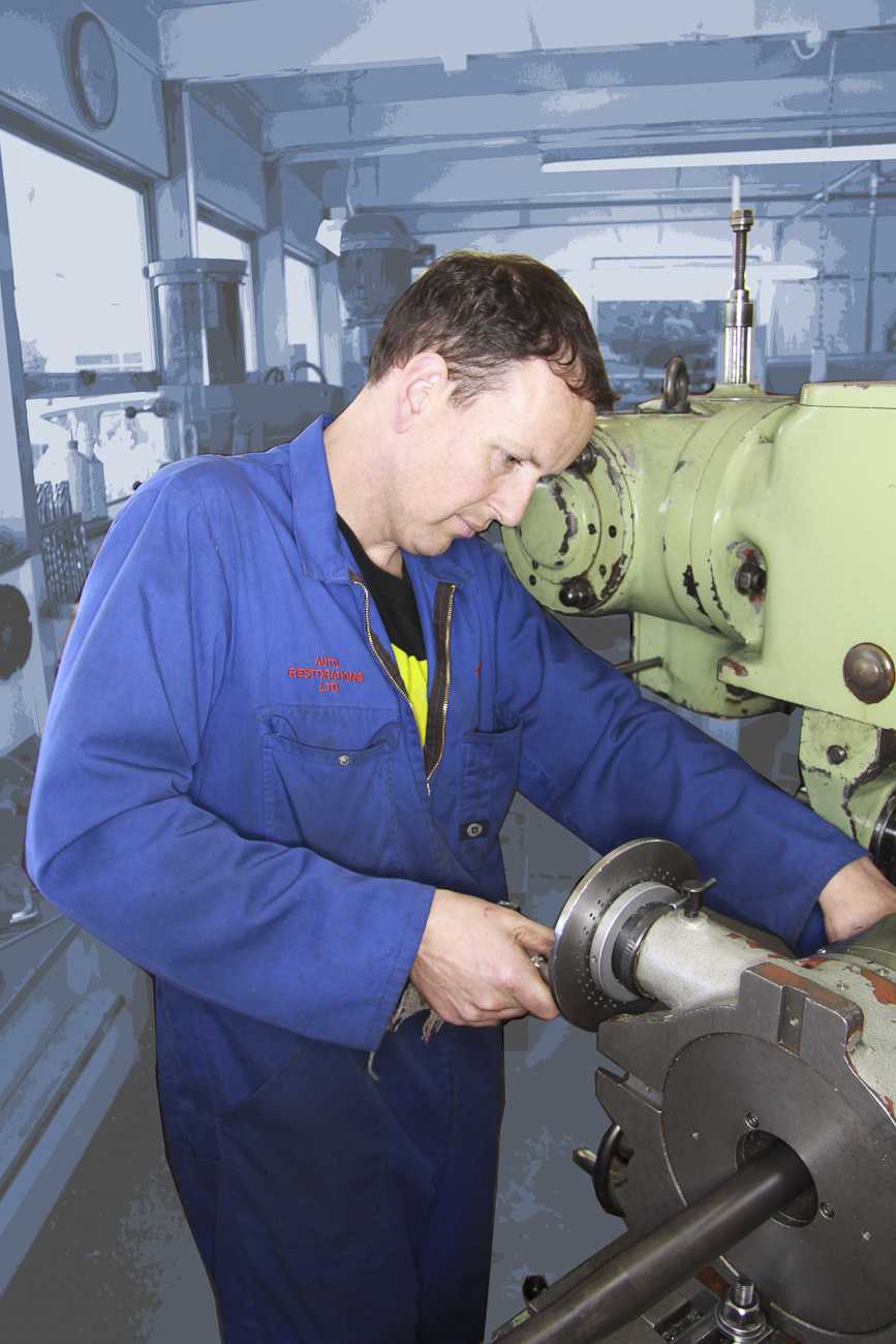 Simon Steffens machining a bespoke part in the Auto Engineering Shop at Auto Restorations.