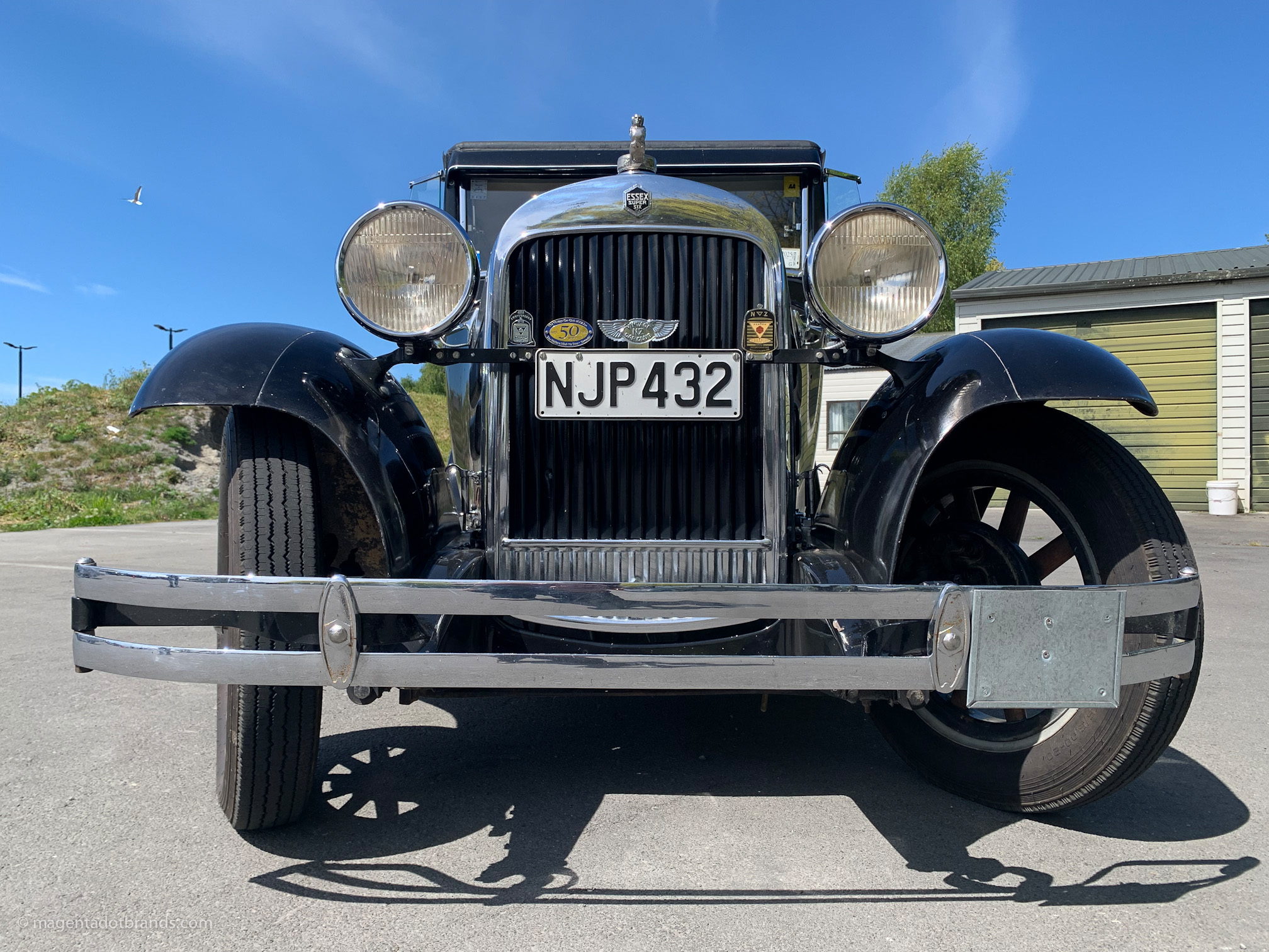 Welcome to a journey where the past meets the future, where the classic lines of a 1928 Essex Super Six four-door car, whose chief selling point was “affordable luxury,” intermingle with the art of modern graphic design. I recently had the incredible opportunity to photograph this rare American vintage beauty in the car park of the historic Richmond Workingmen’s Club in Christchurch. Note that the gallery of images from the photoshoot is at the foot of the page.