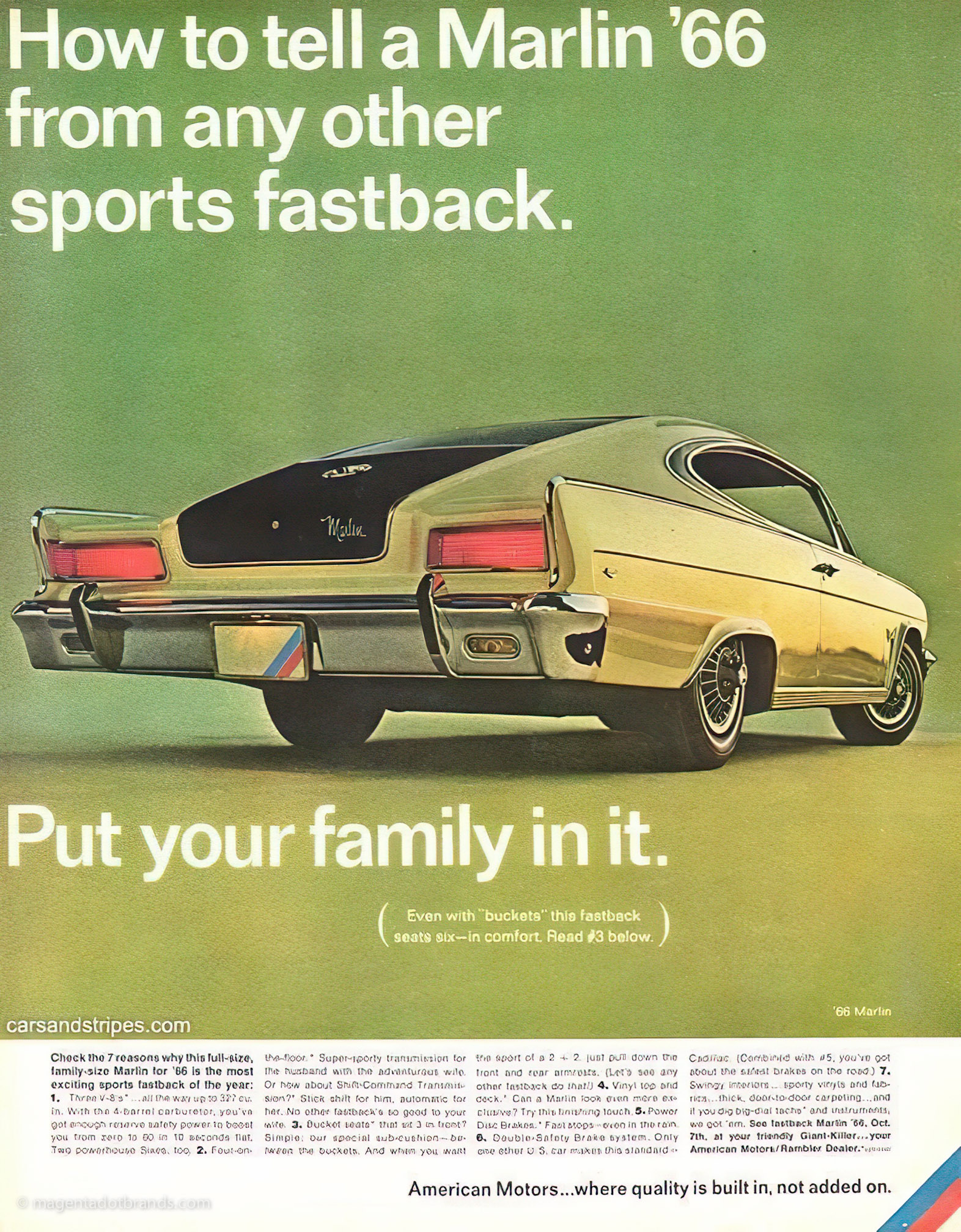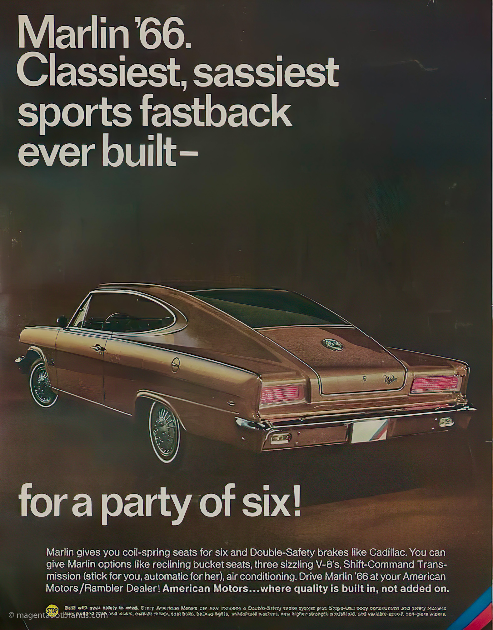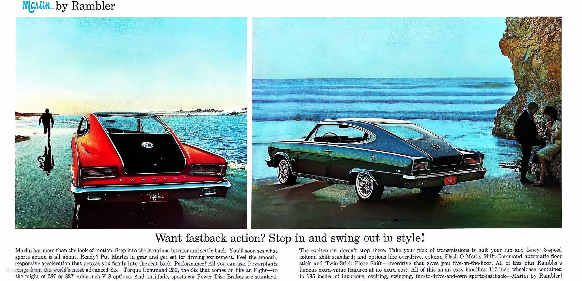 Get ready to take a groovy trip back to the 60s. The ads were bold. The colours were vibrant. The cars were as cool as a cucumber in a martini glass! Here’s a gallery of full-page colour magazine ads for the American Motors Marlin from 1964-67. The advertising is even more eye-catching than the car itself. It made you want to drive one off the page. These ads aren’t just a blast from the past. They’re a testament to the creative genius of yesteryear’s ad men. They knew how to sell a dream on four wheels. They might seem a bit over the top to some contemporary eyes. Let’s not judge the Mad Men of Madison Avenue by today’s standards. Instead, let’s appreciate the aesthetic merit and the craftsmanship that went into these well-designed, well-made pieces of automotive history. Buckle up for a ride through time, where very page turn is like shifting into a new gear of nostalgia. It’s a journey of style!