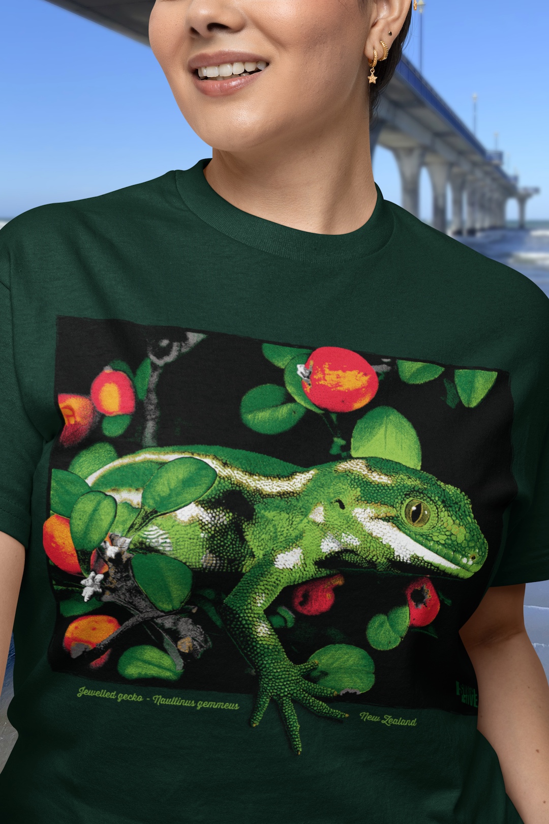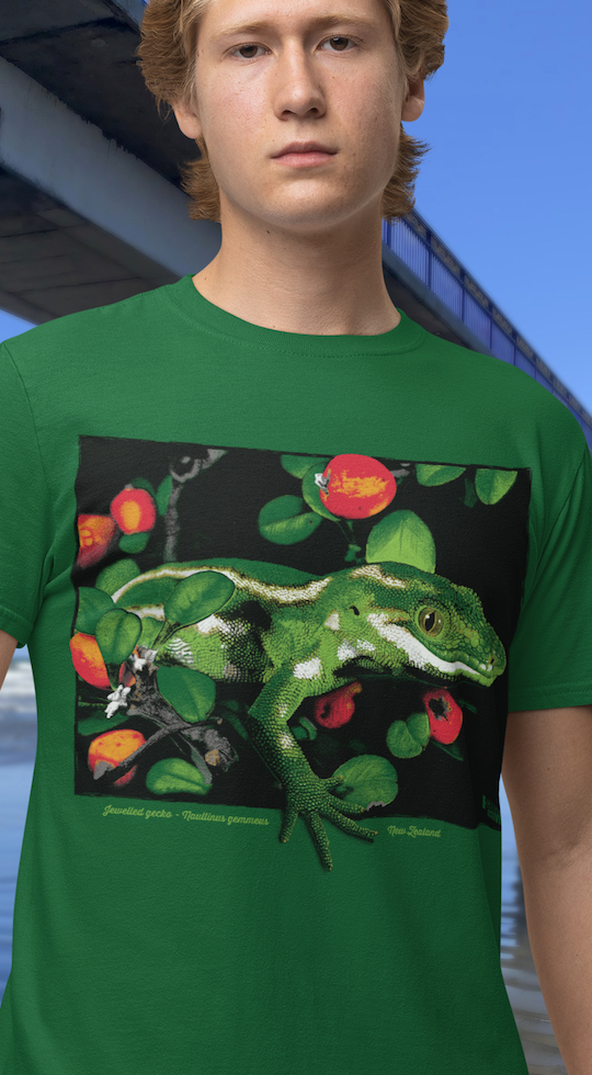 The complexity of the final print dictated the number of stencils—for this Jewelled Gecko design, nine separations were used, one screen even split between two colours for a more nuanced look. This wasn’t just about achieving colour; it was about creating a “screen gem” by respecting the source photography and its subject and adapting it into the new visual form of wildlife art on a t-shirt, while maintaining accuracy.