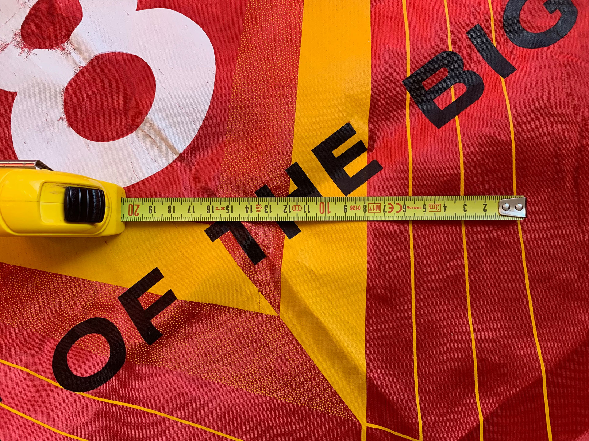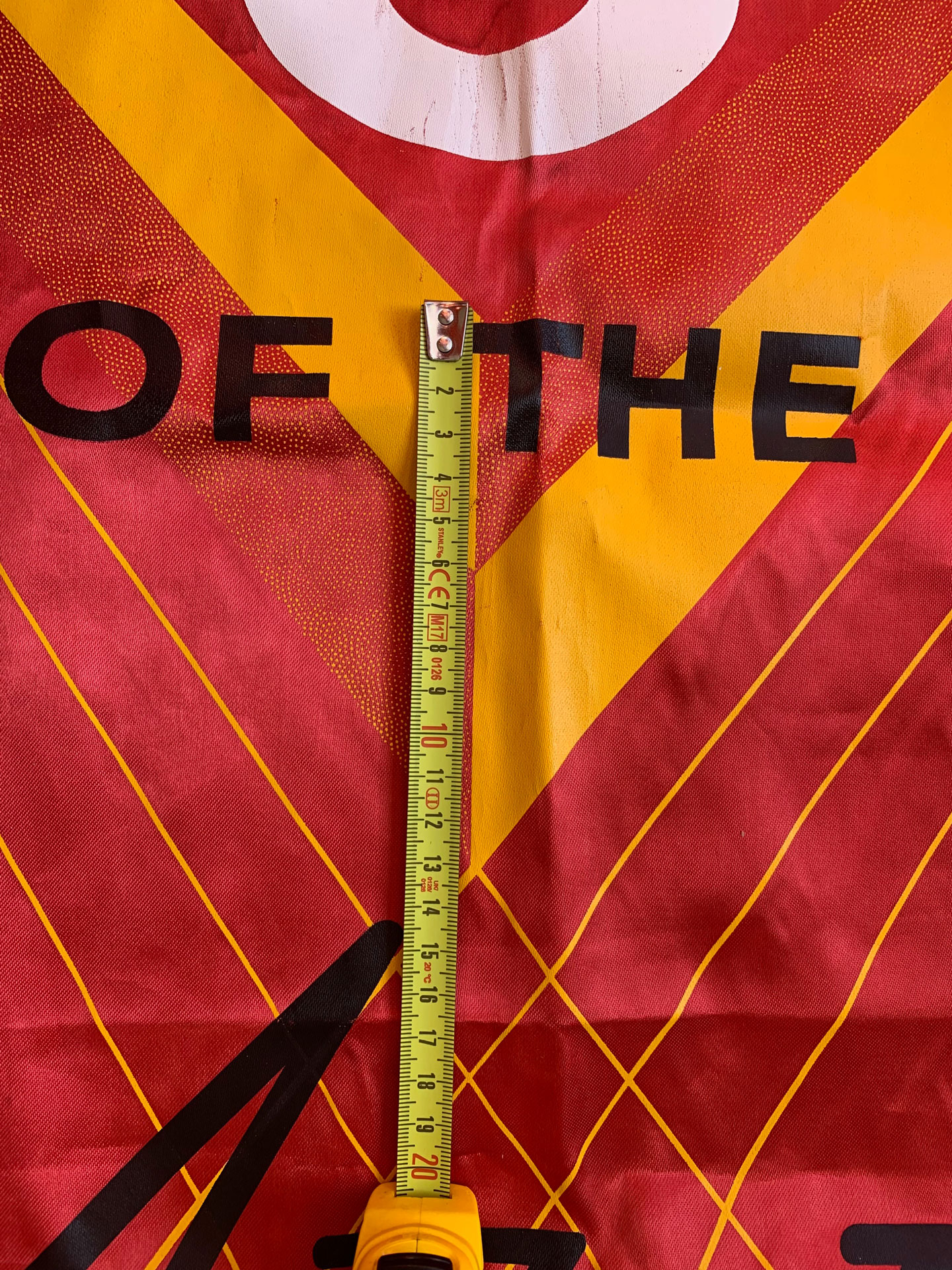 - Precise Positioning: Next, the weeded vinyl is accurately positioned onto the polyester silk using alignment tools or a lightbox to match the original banner’s layout. Proper placement is critical to replicate the vintage design’s proportions and symmetry.