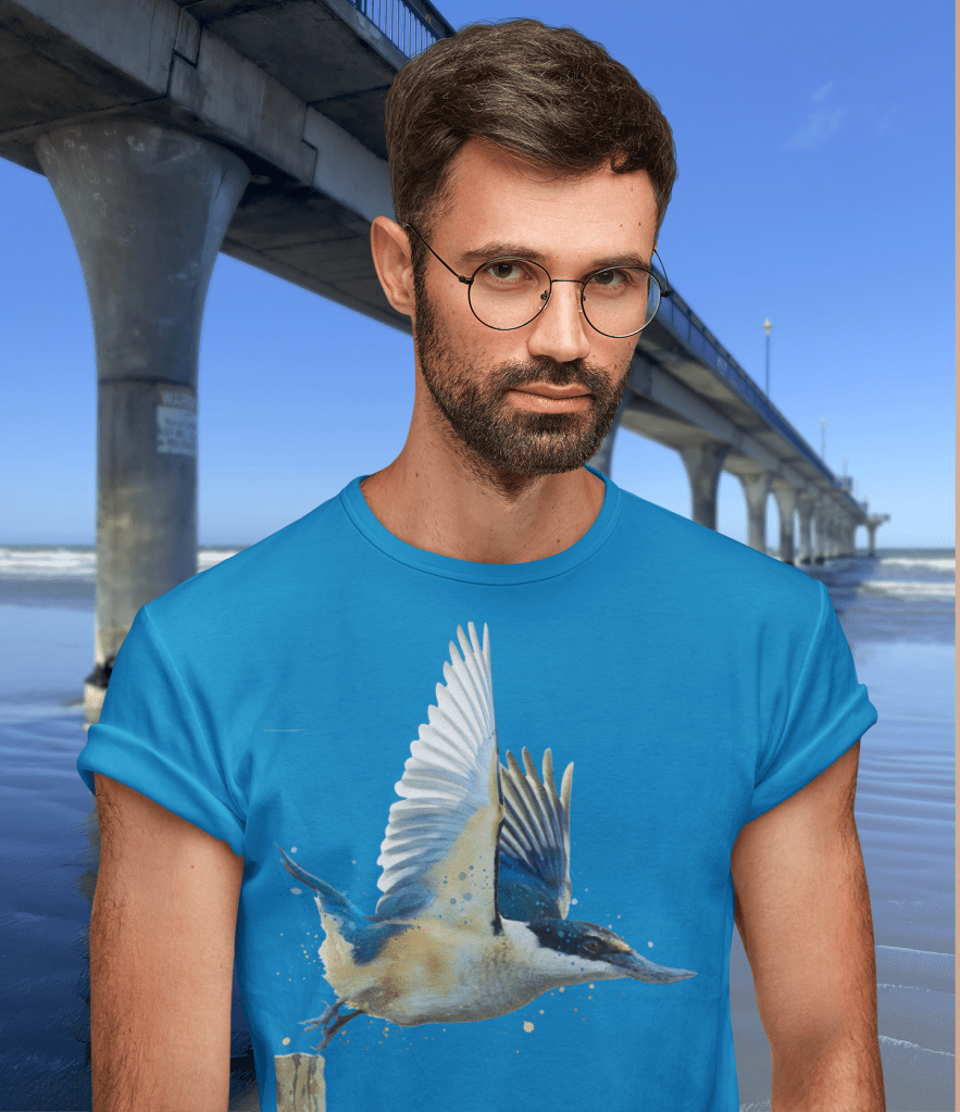Available now on pure cotton tees in four coastal colours tuned to show off the kingfisher’s plumage! https://magentadotbrands.com/shop/