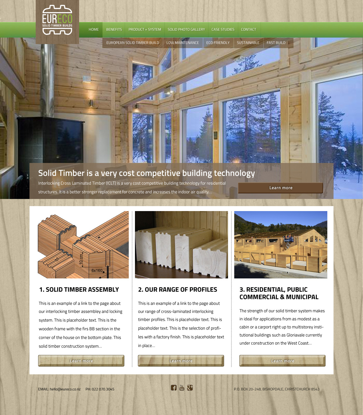 Home alt. 01c—Woodgrain bgr. total wallpaper. Banner slide: “Solid timber is a very cost-competitive building technology.”