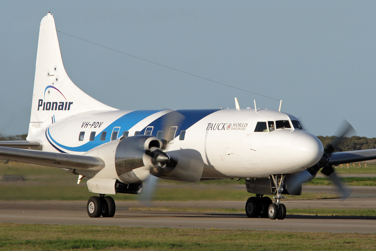 Pionair Australia Convaiir VH-PDV taxis for take-off Brisbane airport, Queensland, Australia, 2007. Photo: Graham Bottomley.