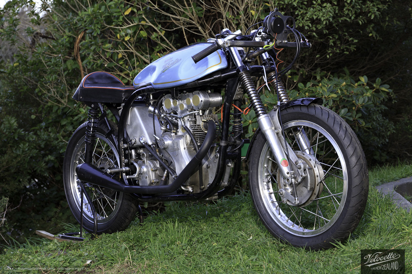 The Nick Thomson, recreated ‘Eldee-2’ engine is the gleaming hero of this starboard-side front three-quarter elevation. Shot at Nick Thomson’s Wellington workshop immediately prior to first fitting of the new carbon fibre seat, petrol tank and fairing.