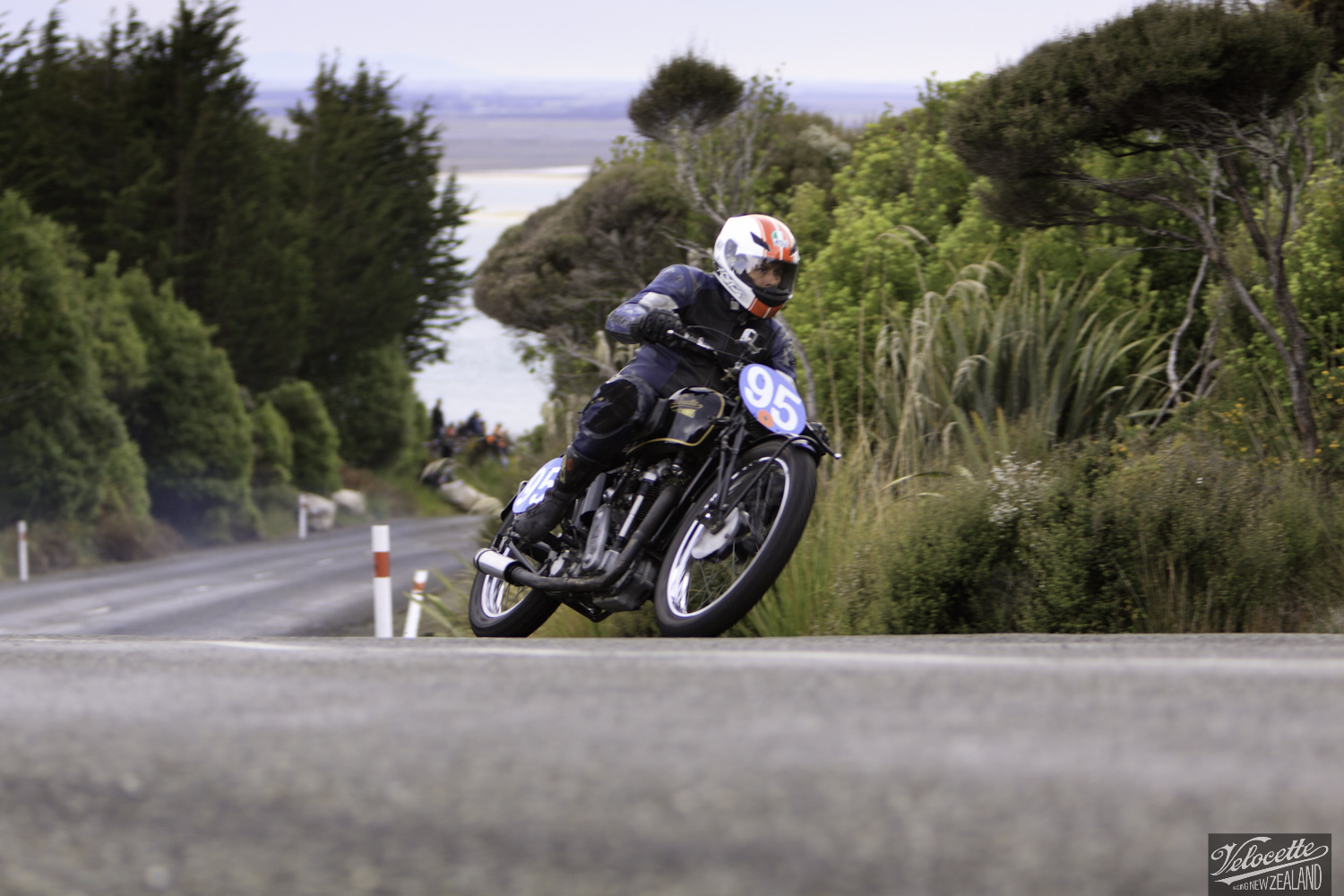 Bluff HIll Climb, Burt Munro Challenge, Flagstaff Road, Motupohue, New Zealand, NZ Hill Climb Champs, Neville Mickleson, Rider 95, Velocette KTT MKIV 350