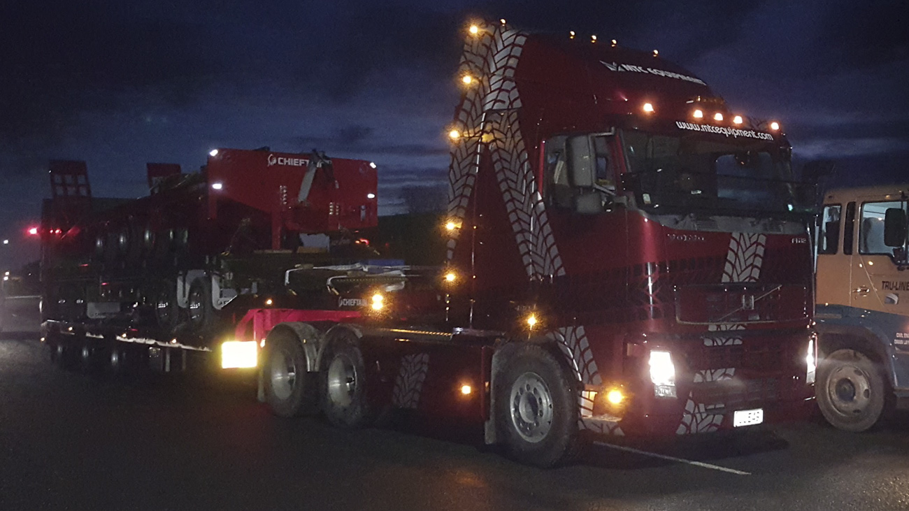 Waiting to roll on to the ferry the super graphic MTC Volvo en-route to the Mystery Creek field days.