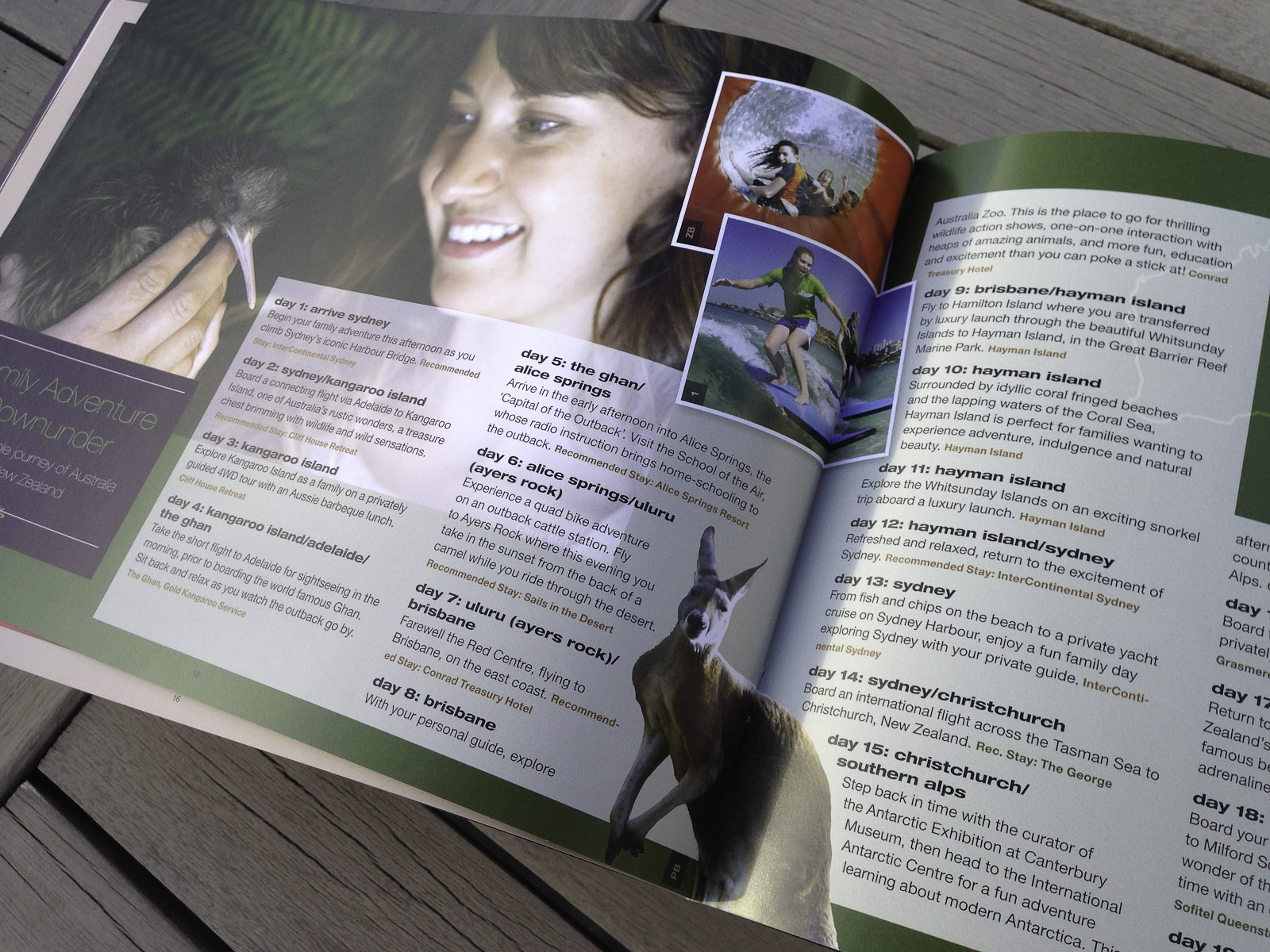Pionair Unparalleled Journeys travel brochure, booklet format. Family adventure downunder spread.