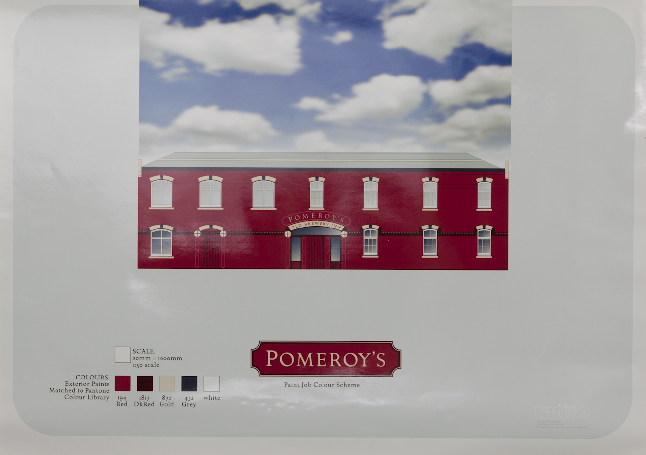 Pomeroy’s Old Brewery Inn, new owners’ pub building repainting scheme visual presentation 2004.