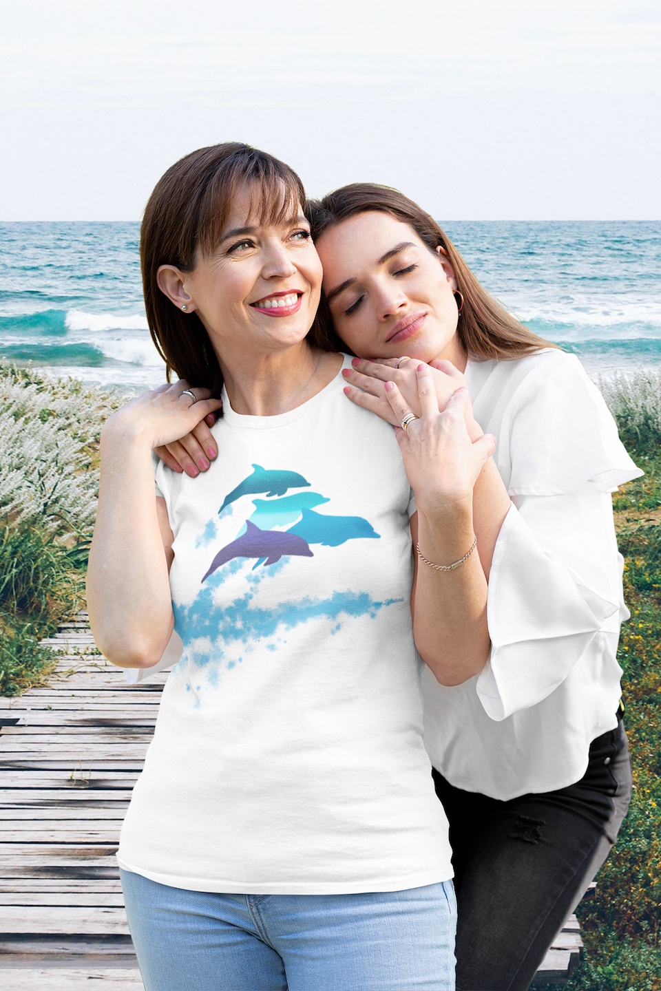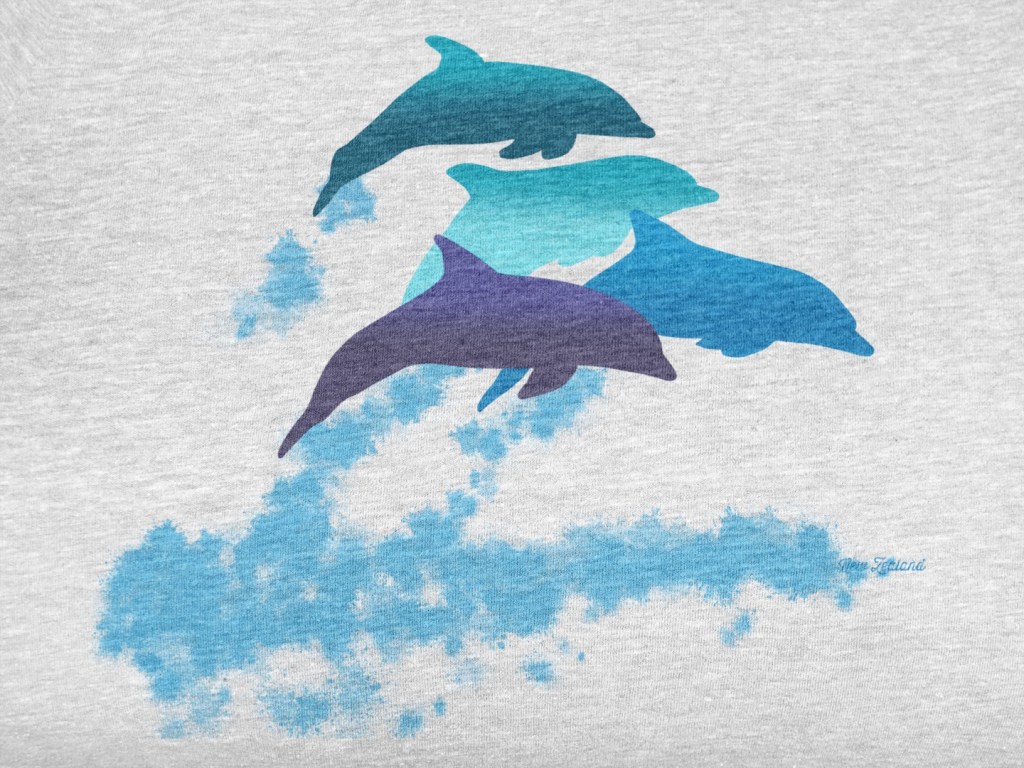Shop for our colourful Women’s, Men’s and Kids’ four common dolphins leaping, New Zealand T-shirt design at Surface Active’s New Zealand or Global store. Sale price: Surface Active New Zealand store prices are all 10% discounted. Use code: “PERFEC” for 5% off your Global store purchase. The all-over printed version of the Dolphins leaping design on a unisex t-shirt is available from the Surface Active Global store.