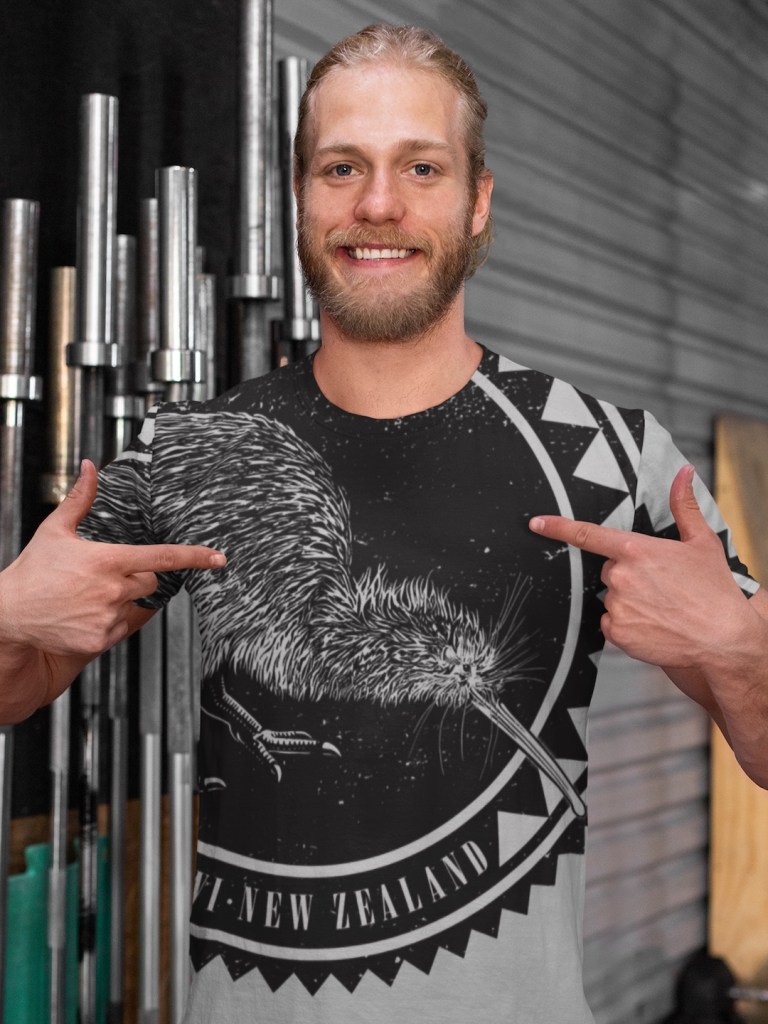 Shop for adults iconic kiwi, New Zealand, all over printed unisex T-shirts at Surface Active’s Global store. This variation of the design prints best on light shirt colours.