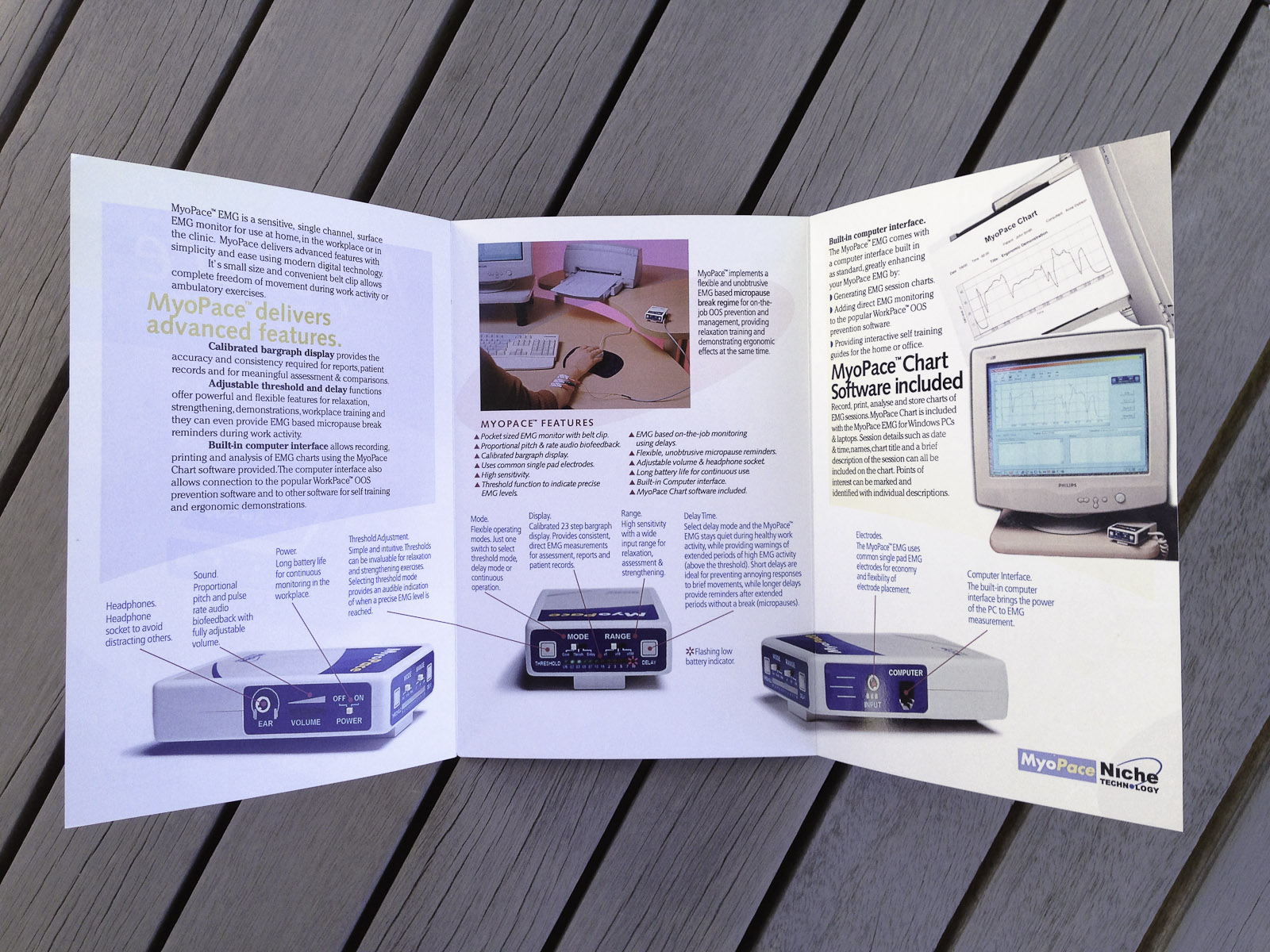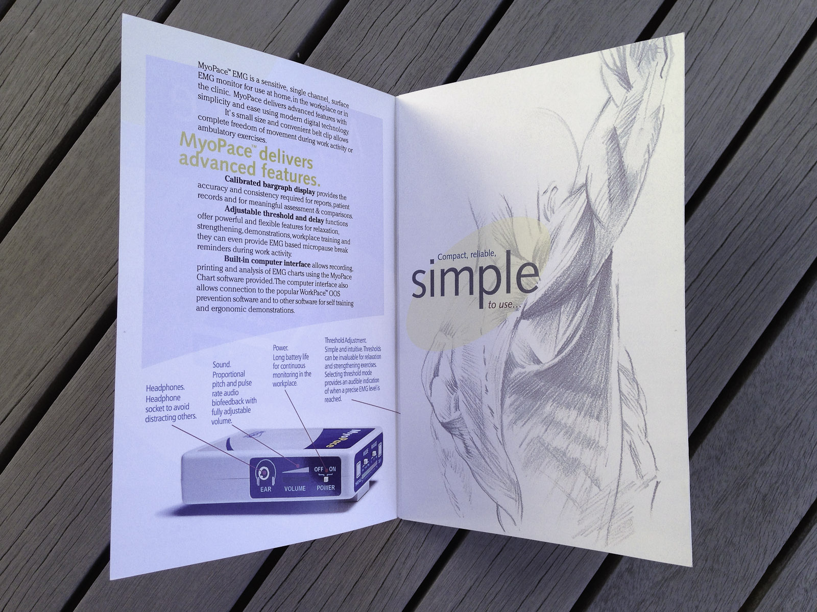 Though the specialist audience is familiar with the sales literature for medical devices, telling the clear story of the Myopace EMG in words and pictures is as demanding for this device as it is anywhere.