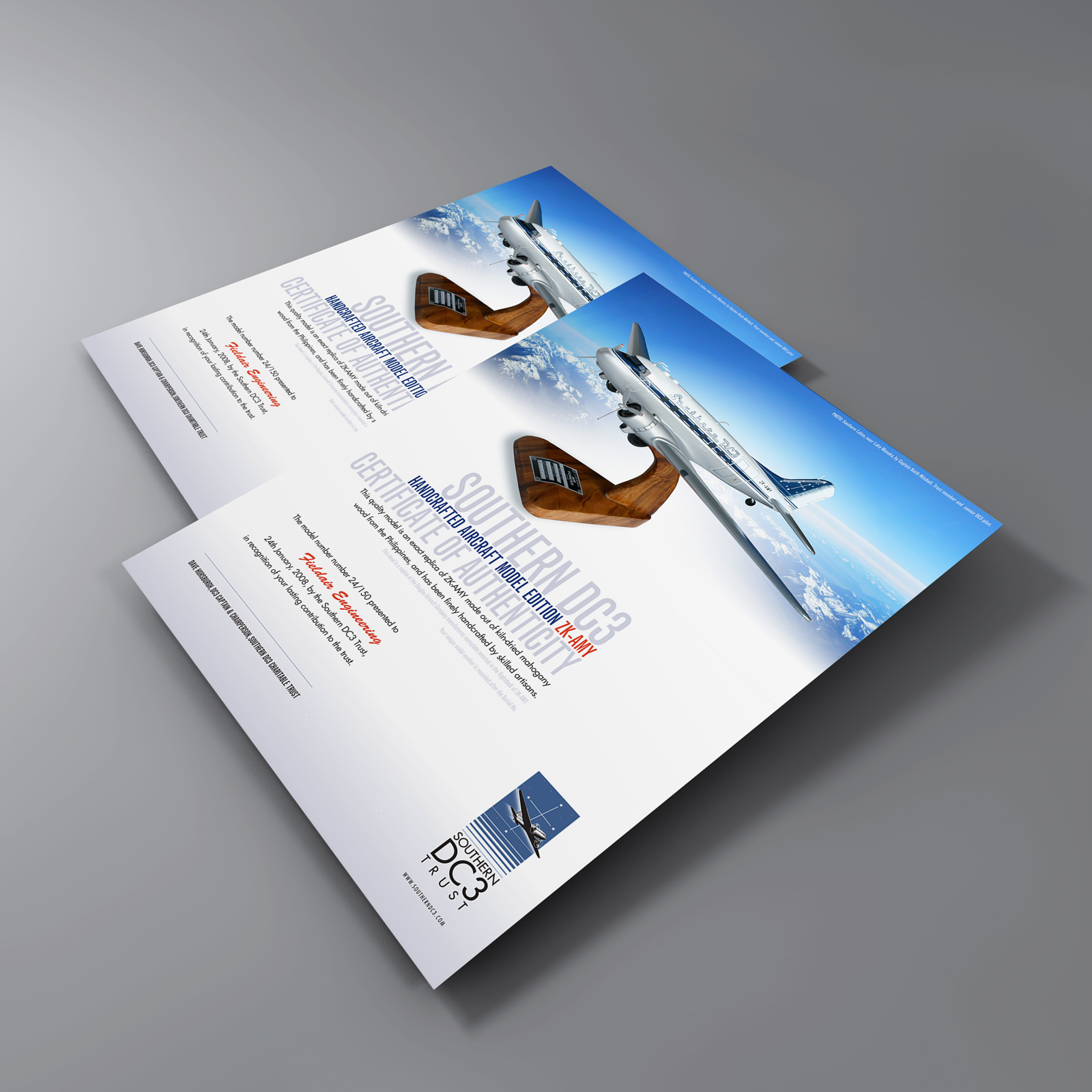 Southern DC3 Handcrafted aircraft model edition ZK-AMY, certificate of authenticity.