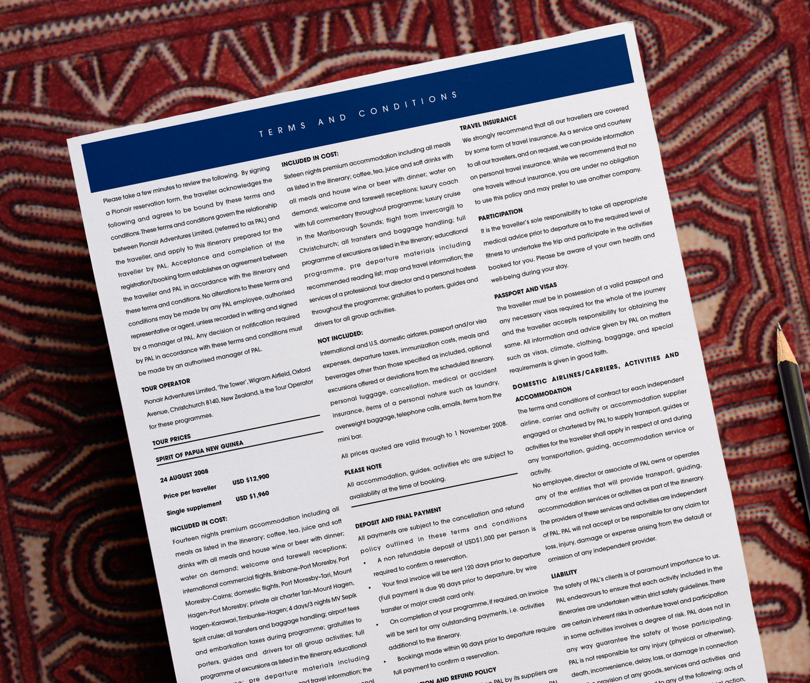 Hidden Gems “Spirit of Papua New Guinea” Pionair escorted tour, reservation form closeup.