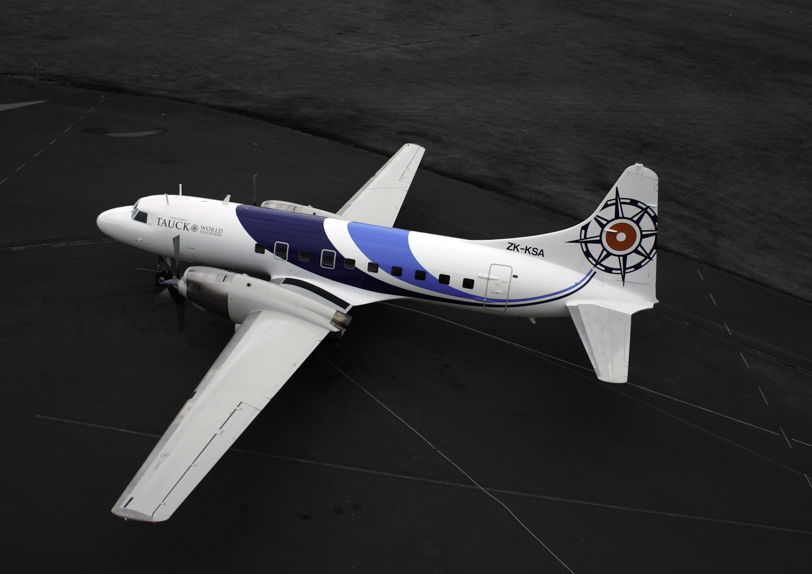 Birds eye view of Pionair Australia Convair VH-PDV (ZK-KSA) the unveiling of its brand new fluid livery. I took the shot from up on the roof of the tower. Photo: Shaun Waugh