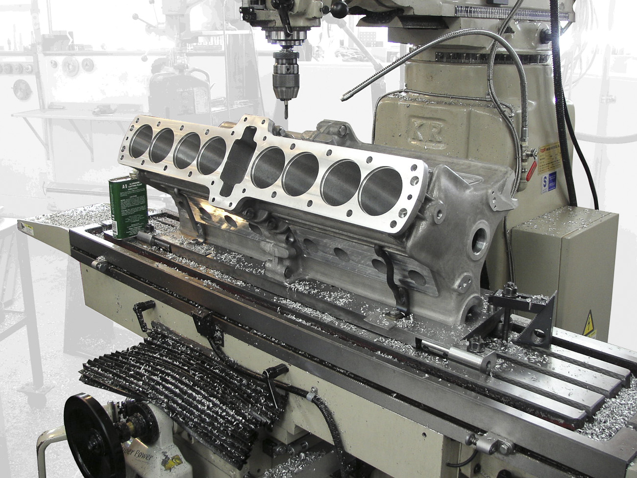 From the client work-in-progress image archive a staff member shot this photo of a crankshaft made from billet steel for an Aston Martin DB6 engine by the firm’s machine shop technicians.